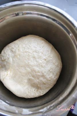 - ثم يضاف الطحين ويخلط جيدا بالطراب اليدوي, وتضاف الزبدة المذابة مع مواصلة الخفق, حتى تنسجم الزبدة جيدا مع الخليط.